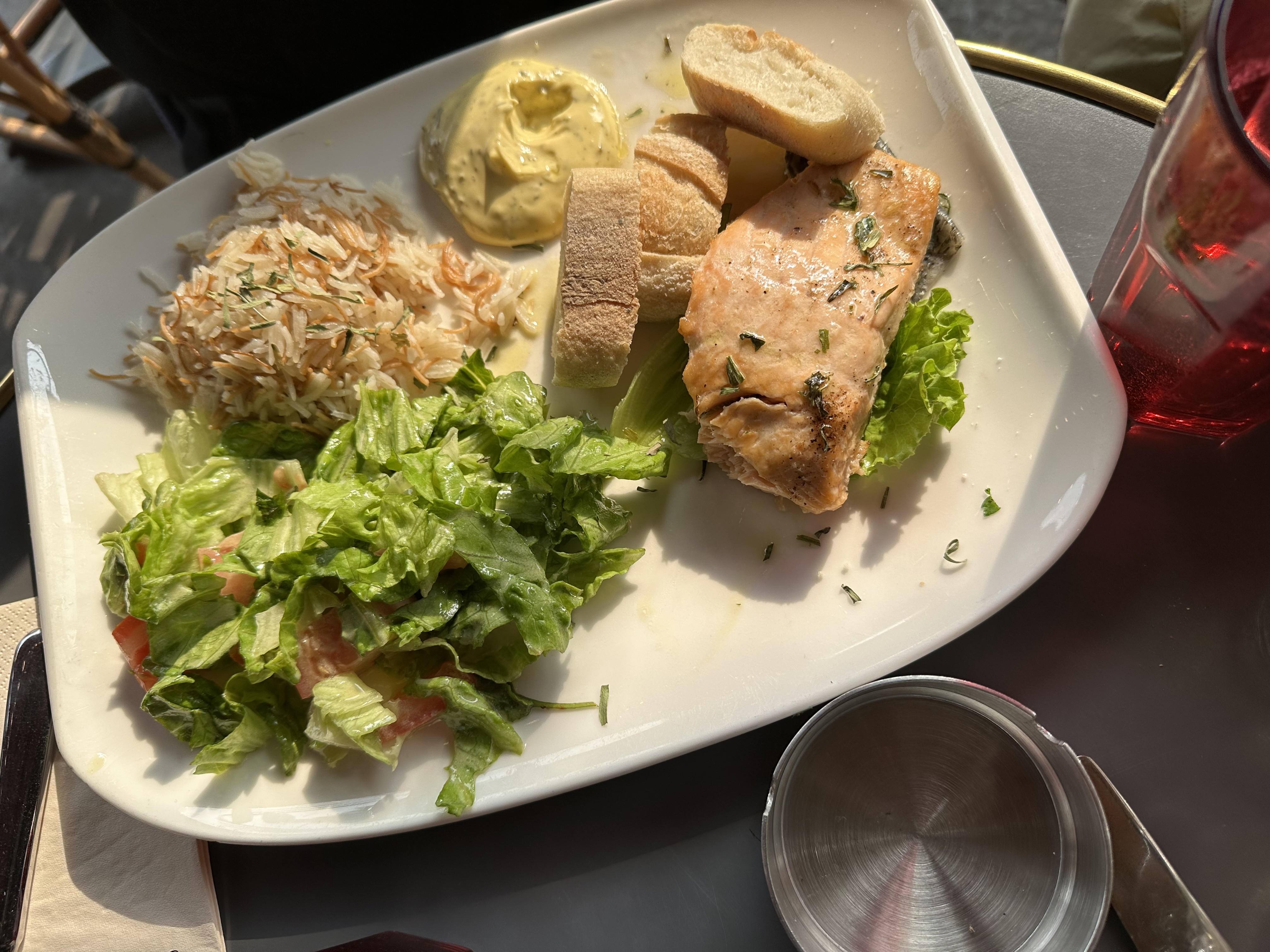 The meal commenced with the salmon, rice, and salad. A dish that immediately commanded attention. The salmon was cooked to perfection. Flaky yet moist. Handled with restraint rather than excess. The aromatic rice provided depth without competing for the plate’s identity. The salad was crisp, fresh, and deliberate. Famous Chef Thomas appreciated how each component served the whole rather than itself. The harmony of flavors and textures was unmistakable. This was not assembly. This was composition.