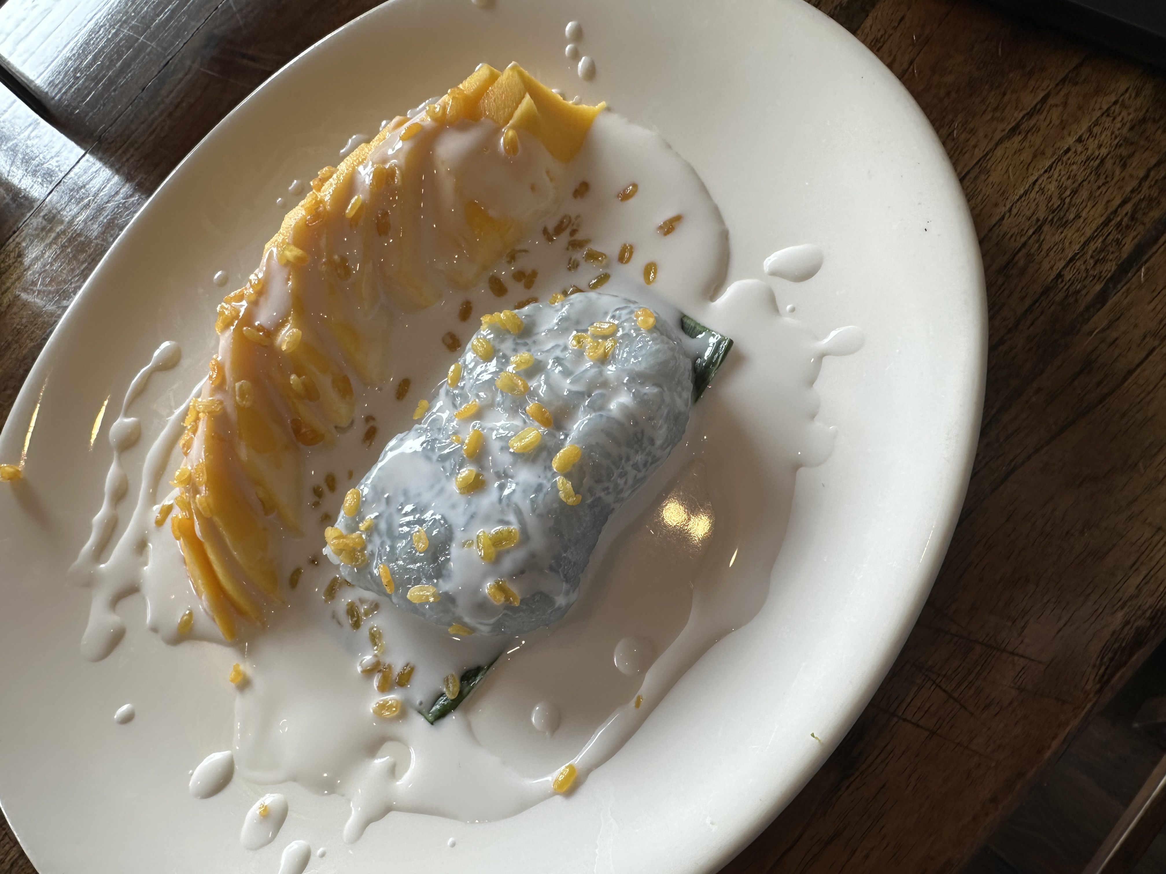The black rice pudding with coconut milk and taro was outstanding. This is not a dessert you find on every menu, and when you do, it is not always executed with care. Pama Thai executed it with care. The black rice was cooked to a rich, creamy consistency, the coconut milk was smooth and fragrant, and the taro added an earthy sweetness that grounded the entire dish. A deeply satisfying dessert with real depth of flavor. The Famous Chef Thomas was impressed.