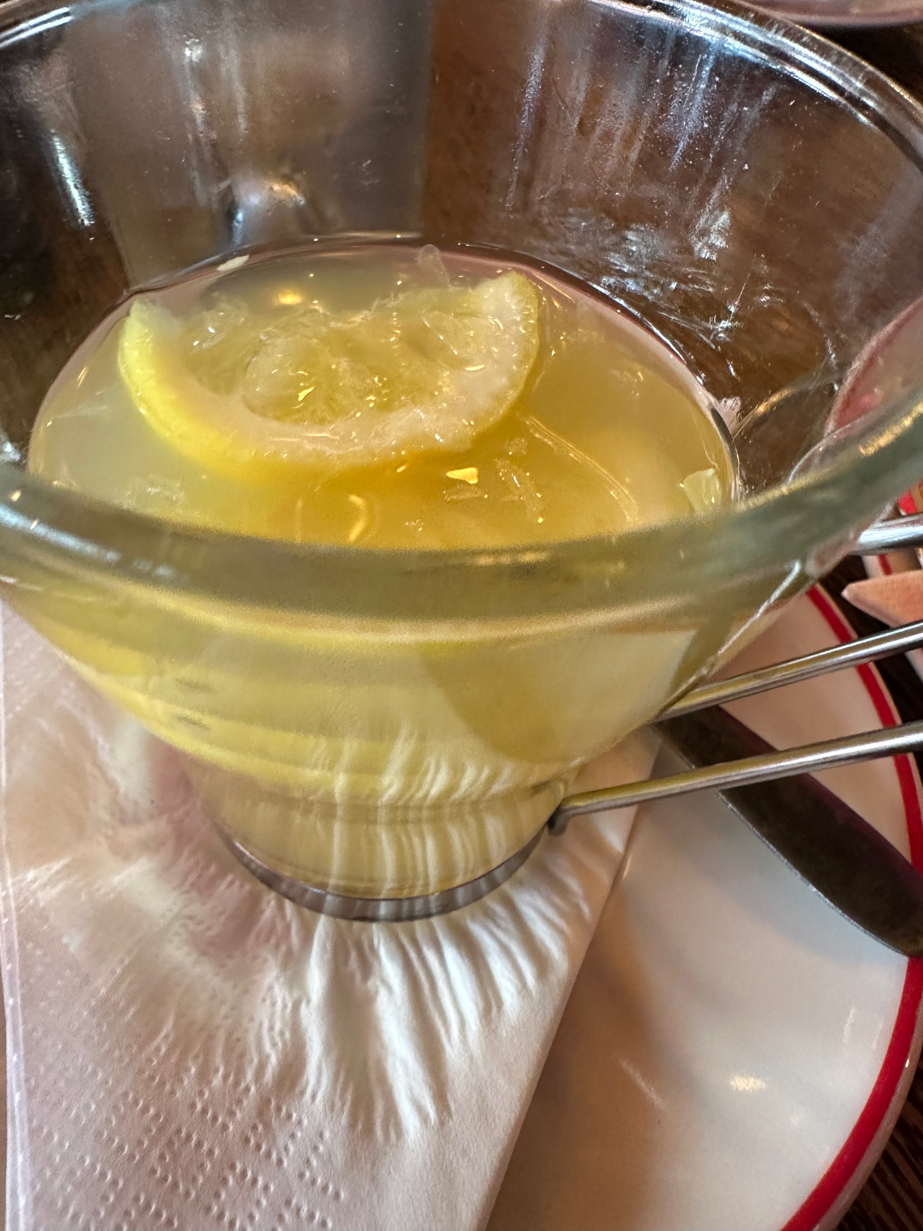 What makes the citron chaud worth noting is its near-total absence from American restaurants. In the United States, hot lemon water with honey is not a standard menu item. It is not offered. It is not expected. If a diner asks for it, the request is often met with confusion or an improvised response. The drink simply does not exist in the American dining vocabulary.