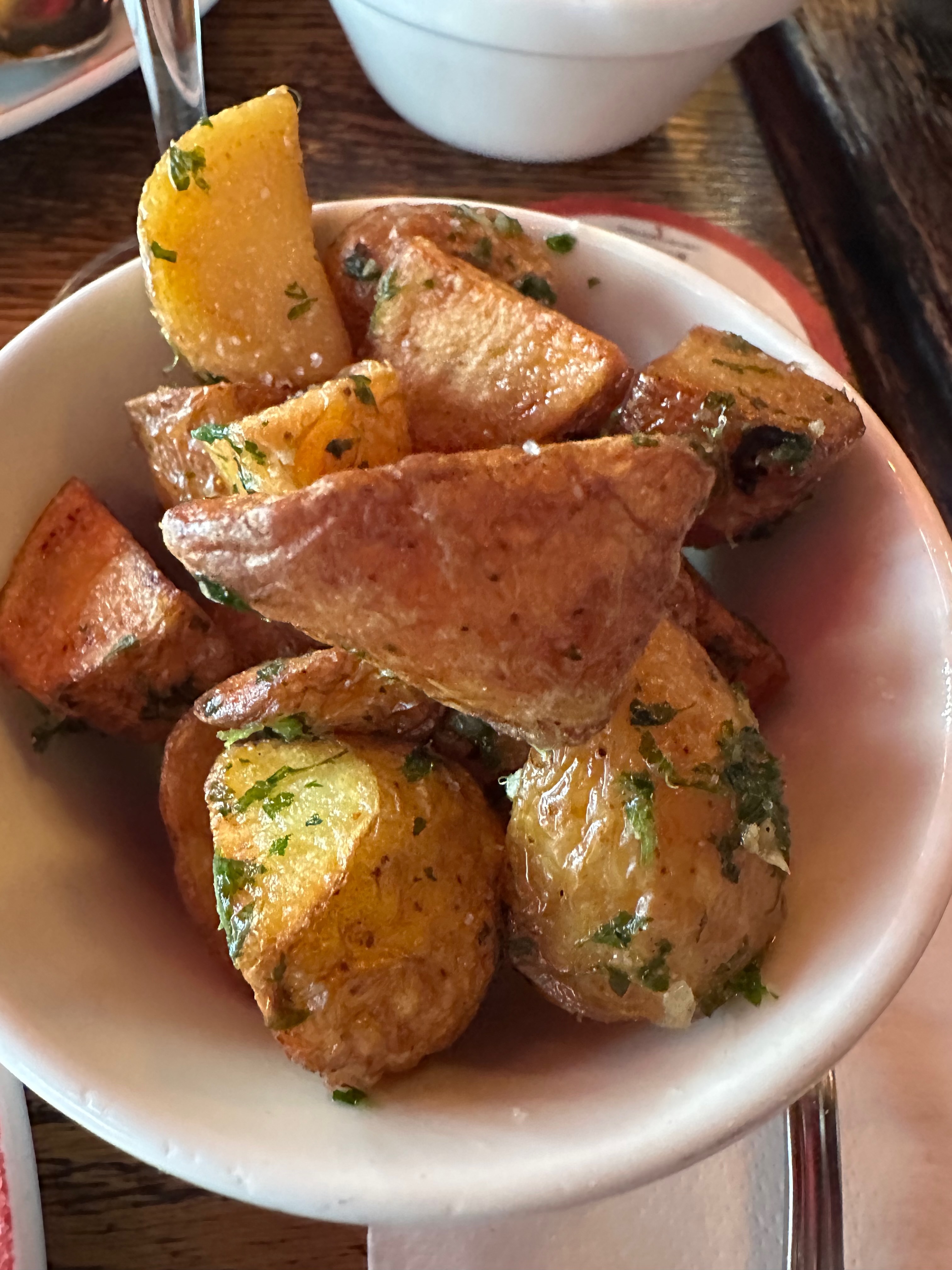 Roasted potatoes with fresh herbs were served alongside the meal. They were simple, well-prepared, and notably tasty, the kind of straightforward accompaniment that reminds one how satisfying properly cooked potatoes can be.