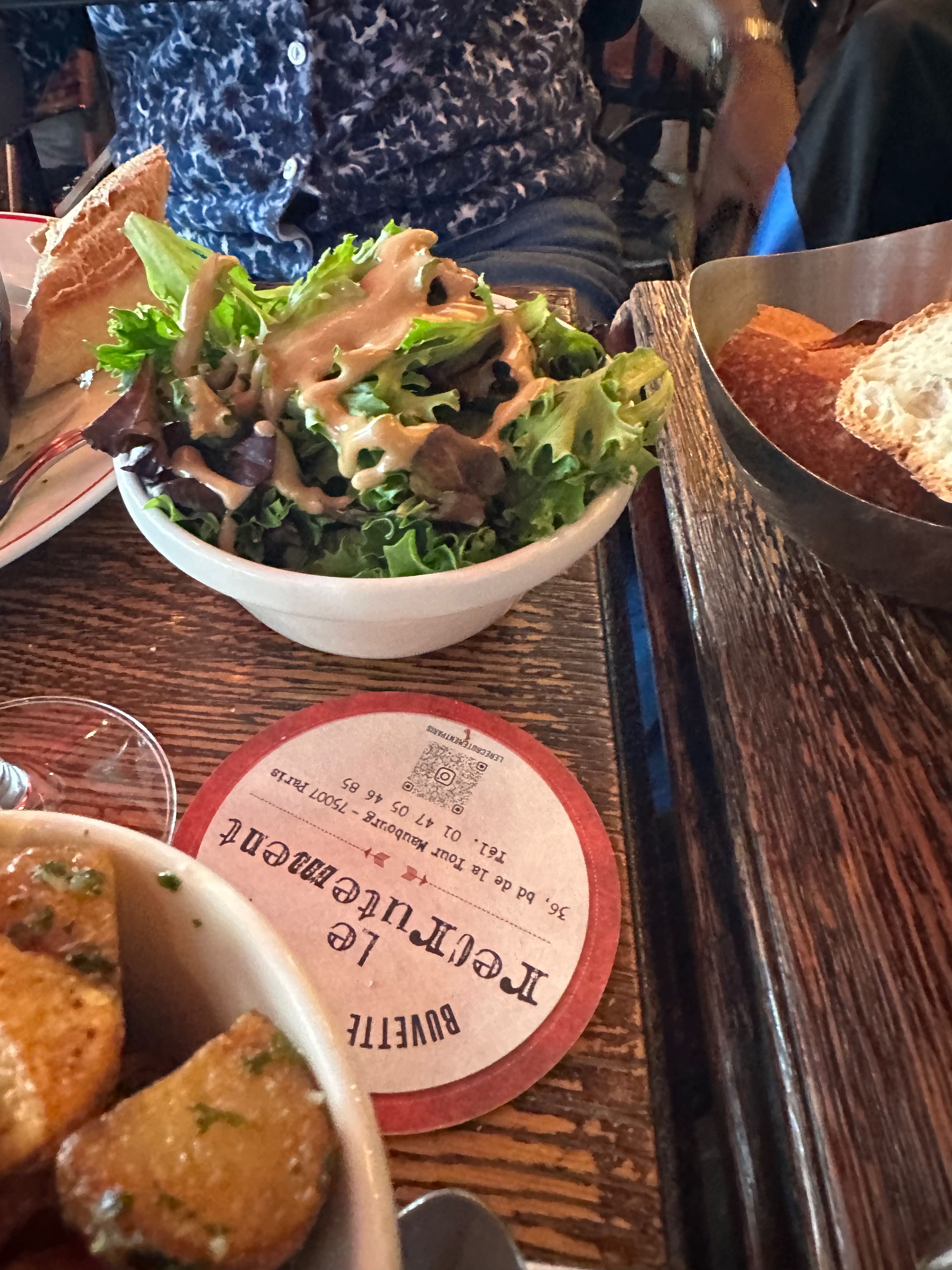 Mixed greens, bread basket, Le Recrutement buvette coaster
