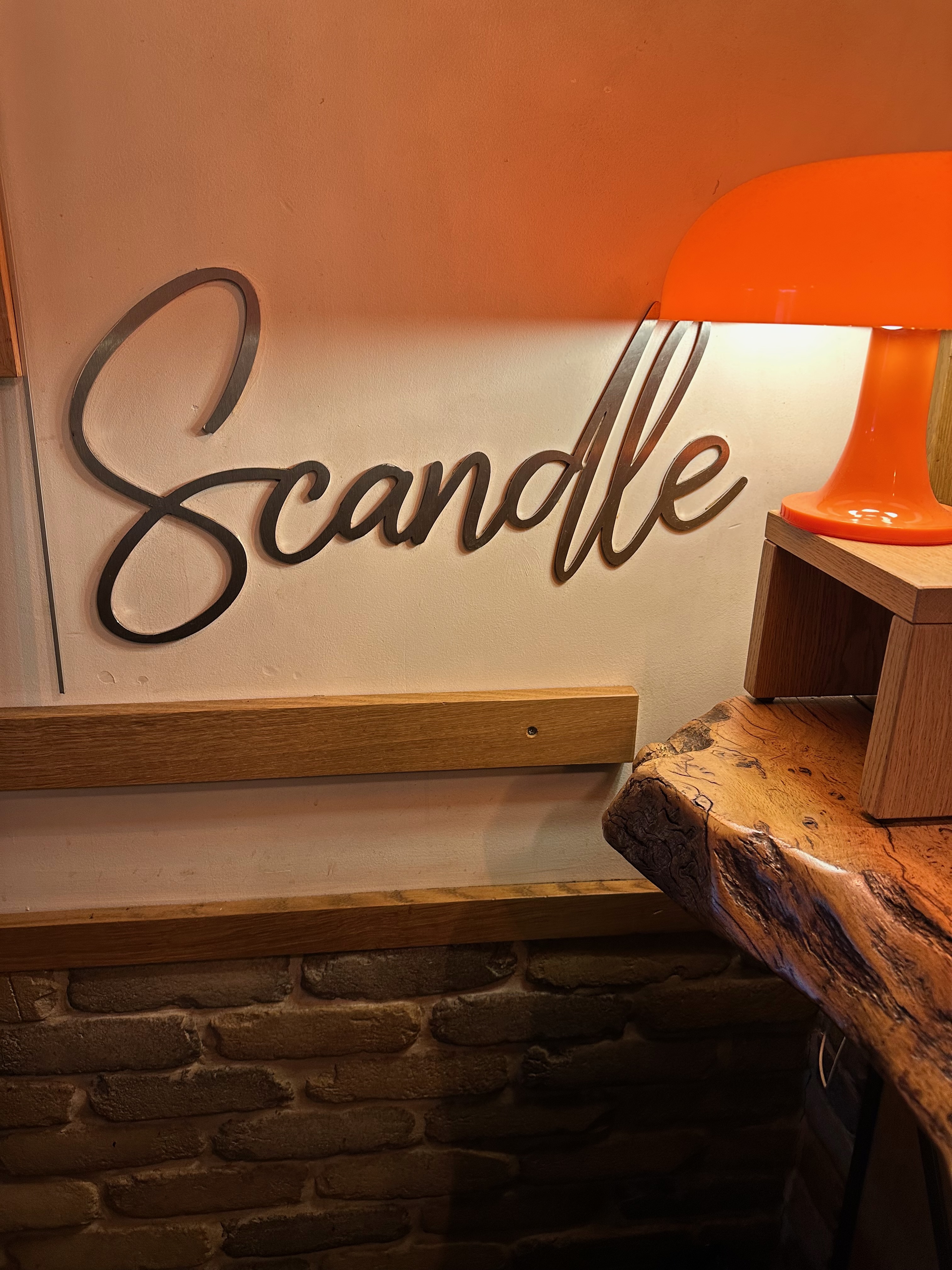 Established in 2015, Scandle is a very good evening place to stop in for a drink and a meal. The exterior glows with its signature orange signage and whimsical wall art, with Edison bulb lighting strung above the terrace that invites you to sit and watch the neighborhood go by. Inside, the design is just as deliberate—exposed brick walls, a live-edge wood bar, and a cursive metal “Scandle” sign illuminated by a striking orange mushroom lamp. It is a restaurant that knows exactly what it wants to be.
